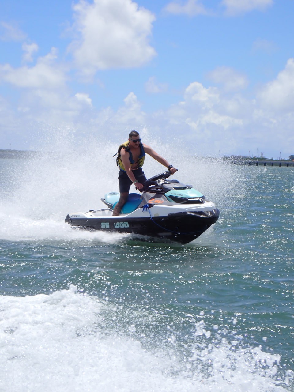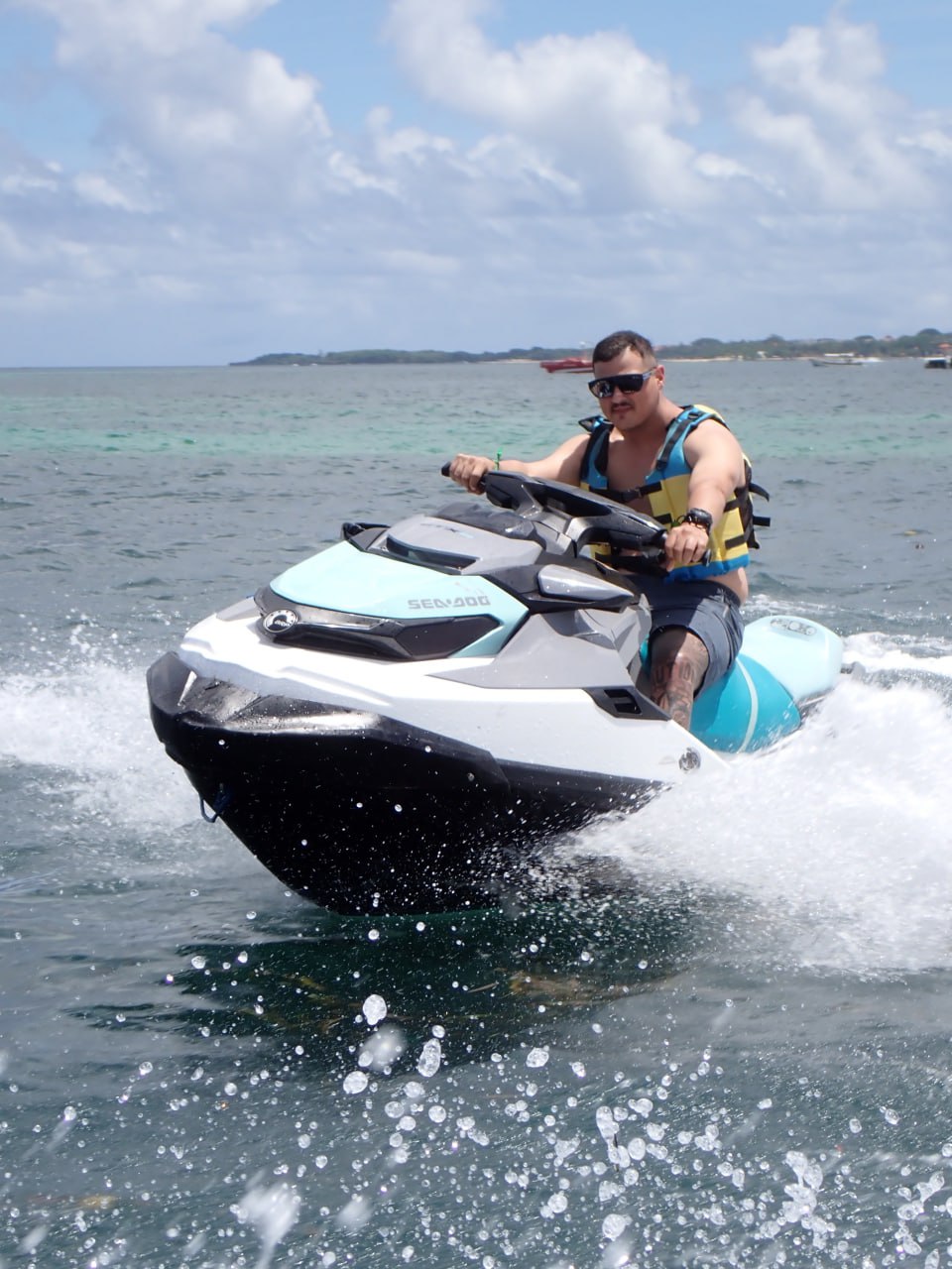 Jet Ski offers an exciting 15 minute solo watersport experience—riding without an instructor—where you independently operate a 700 cc motorized watercraft to explore the coastline of Tanjung Benoa in southern Bali. Mandatory life jackets are provided, but riders navigate the designated zone entirely on their own. Operations are based along the pristine white-sand beach stretching 3 kilometers from Nusa Dua to the tip of the Benoa Peninsula. This unaccompanied ride delivers a raw burst of adrenaline and an independent perspective of Bali's coastal scenery during your vacation on the Island of the Gods.